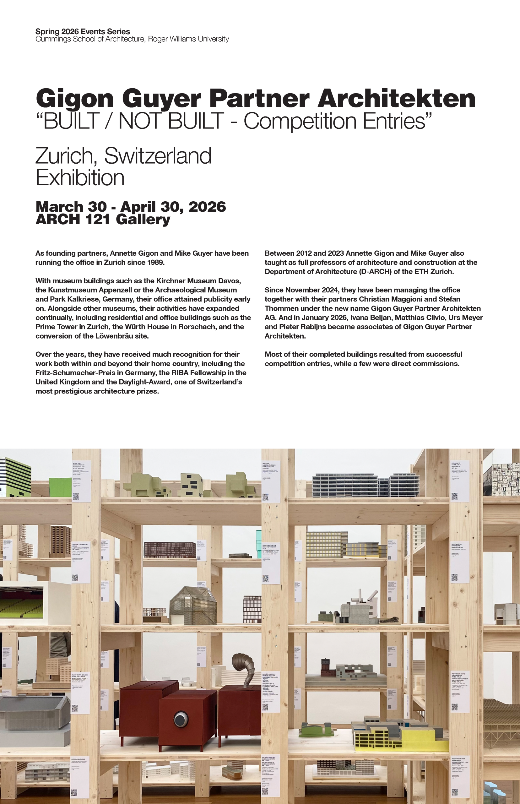 Search for: «Gigon Guyer Partner Architekten: BUILT / NOT BUILT – Competition Entries» Exhibition location Cummings School of Architecture, Roger Williams University, Bristol, USA Exhibition period 30.03.–30.04.2026 Exhibition within the «Spring 2026 Events Series
